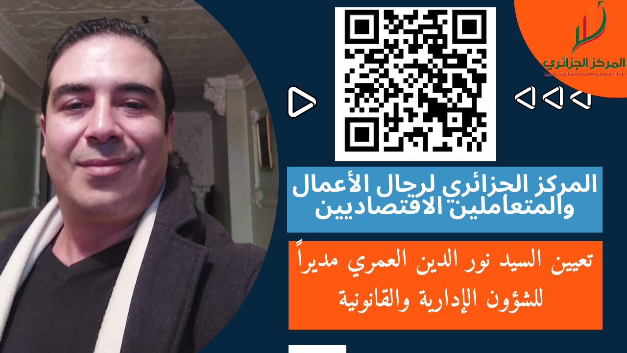 تعيين السيد نور الدين العمري مديراً للشؤون الإدارية والقانونية في المركز الجزائري لرجال الأعمال والمتعاملين الاقتصاديين